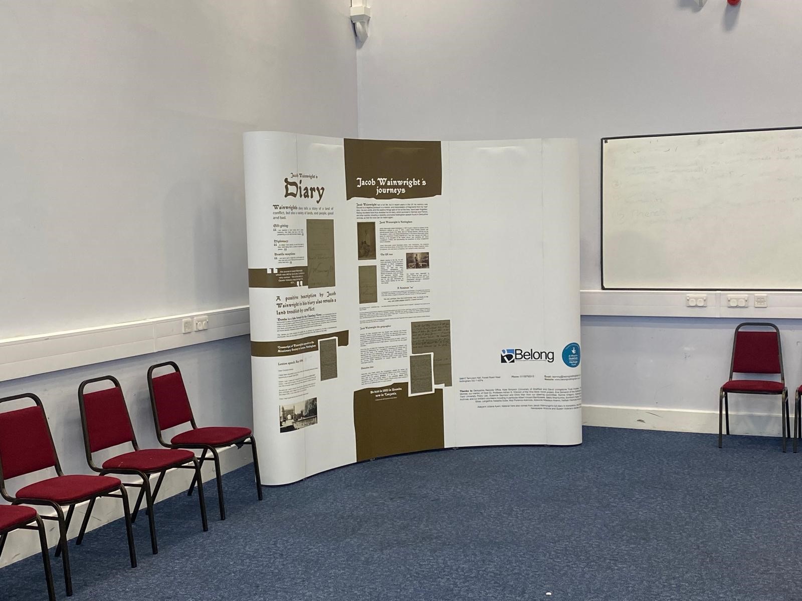 Volunteers play an essential role in researching, designing, and assembling the displays, gaining valuable skills in heritage work and project management. They also participate in transporting the exhibition, ensuring it reaches a broad audience across various community spaces, educational centers, and public venues. This approach makes the story of Jacob Wainwright more accessible and highlights the power of mobile heritage exhibitions, while fostering a collaborative environment where volunteers are key contributors to preserving and sharing history.